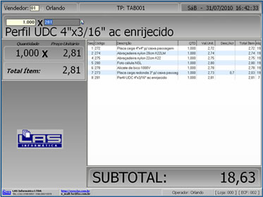 Pode ser parametrizado para operar como Check-out (Venda Direta), ou como Terminal de Atendimento (Venda Balcão => Caixa), emitindo Orçamentos, para serem finalizadas no Terminal de Caixa.